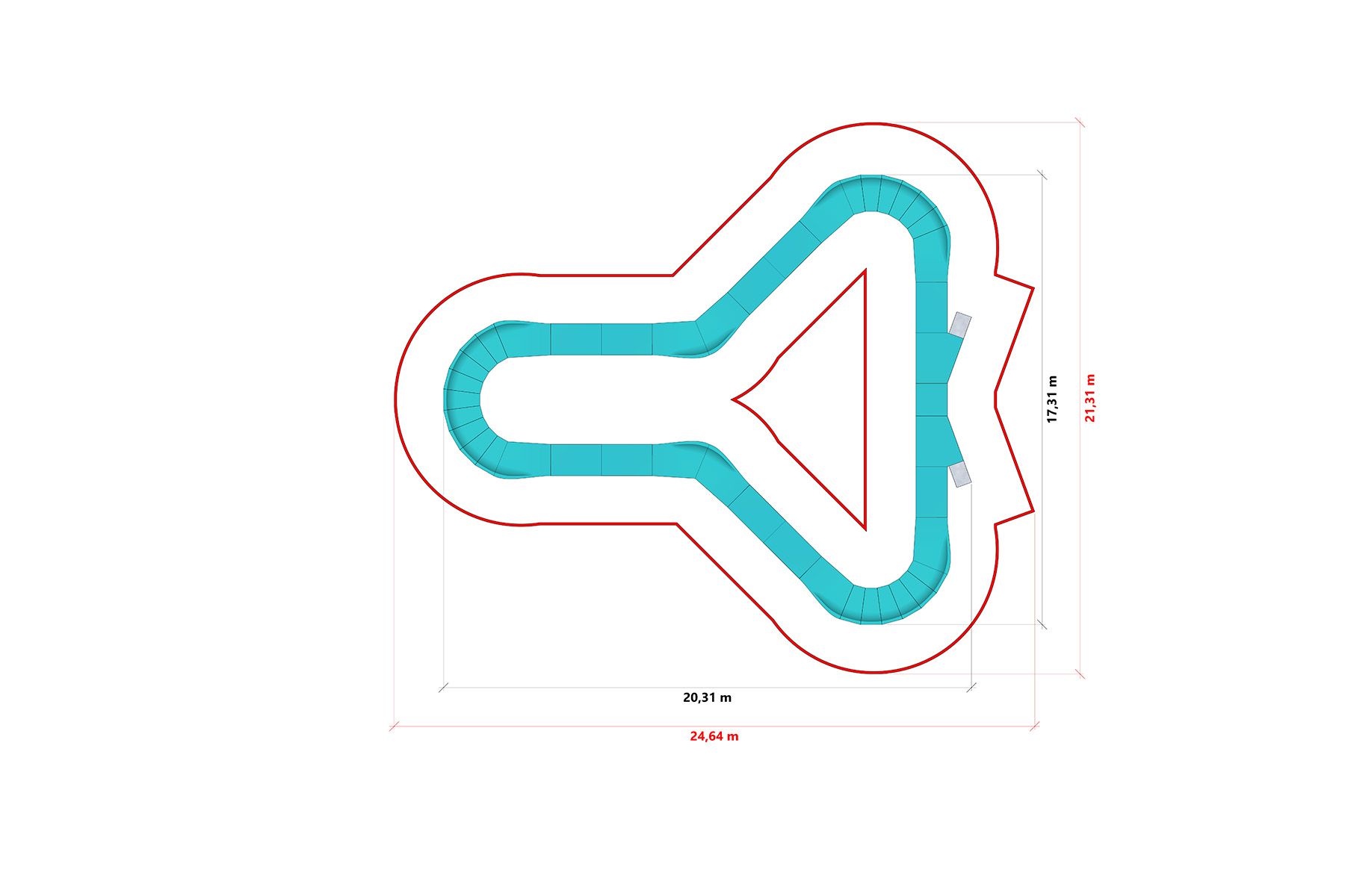 El diseño modular permite una instalación rápida y una posible reconfiguración futura. Gracias a un sistema de pies ajustables, la pista también puede instalarse en terrenos irregulares, lo que permite adaptar la instalación a diferentes espacios recreativos.