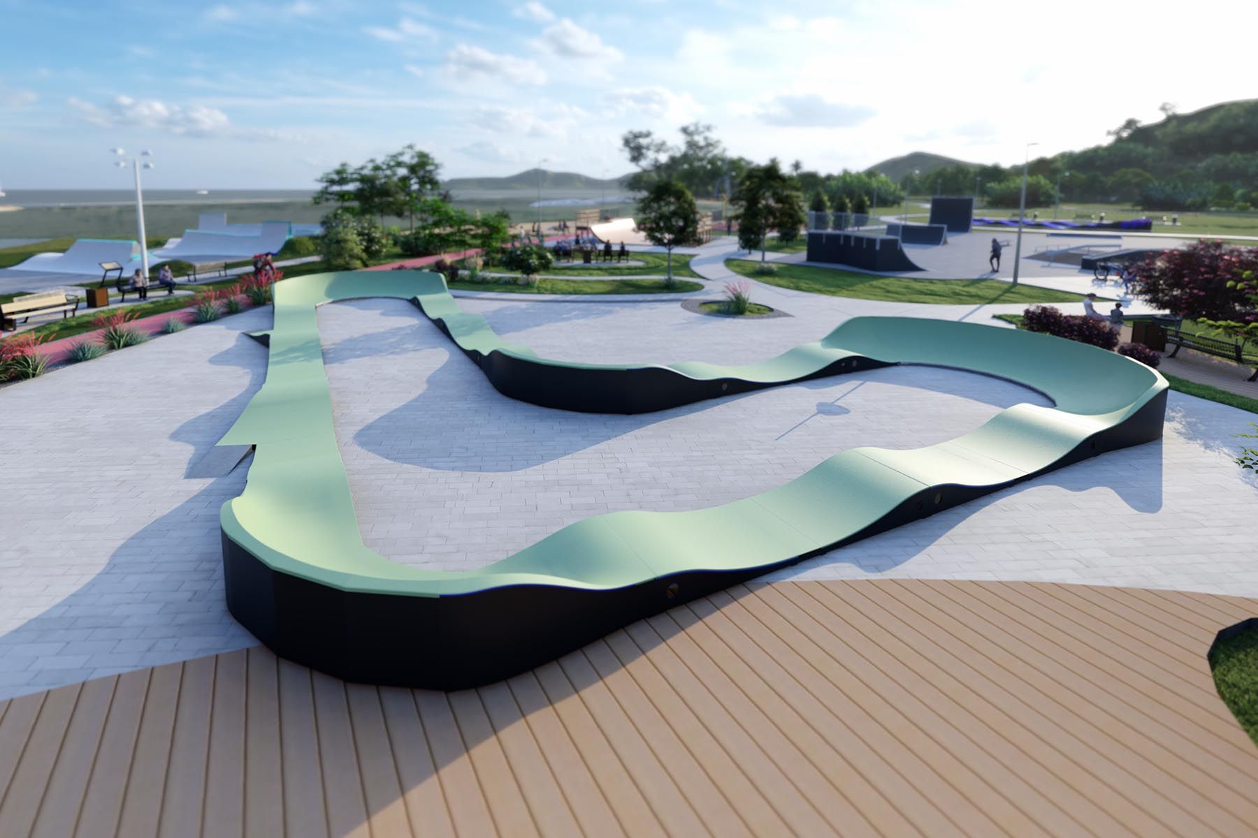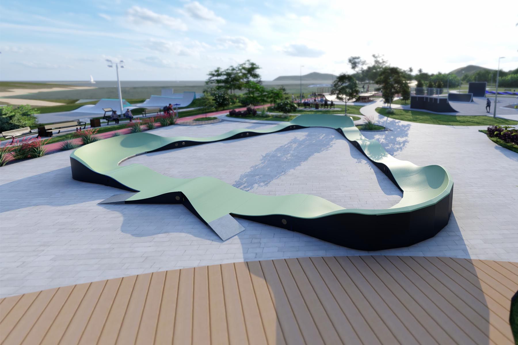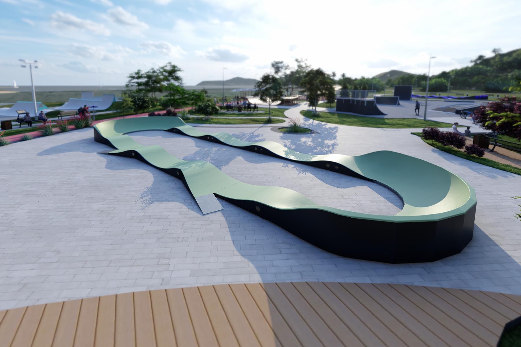 - Pumptrack como parte de un complejo deportivo. Amplía la oferta deportiva de los complejos, atrayendo a más usuarios.