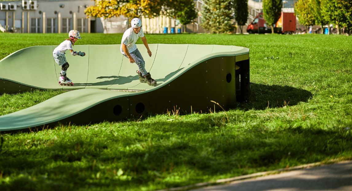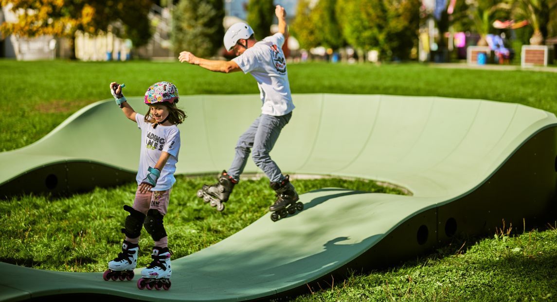 ¡NOVEDAD! ¡Experimente el verdadero confort de conducción con la nueva pista Pumptrack Family! Esta pista de última generación no es sólo un lugar para divertirse. Es una aventura por descubrir y un lugar donde dar tus primeros pasos en los deportes urbanos.