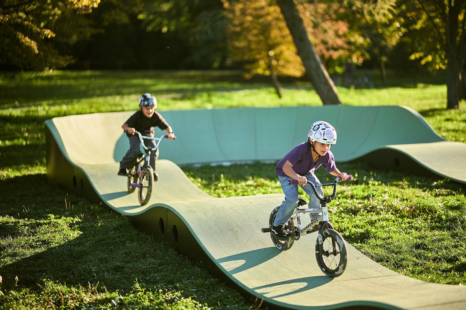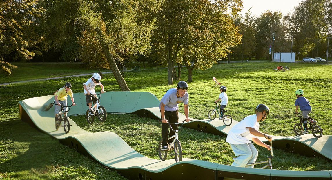 - Pumptrack como nuevo parque infantil. Un moderno parque infantil y un carril bici en uno animan a los niños a mantenerse físicamente activos.