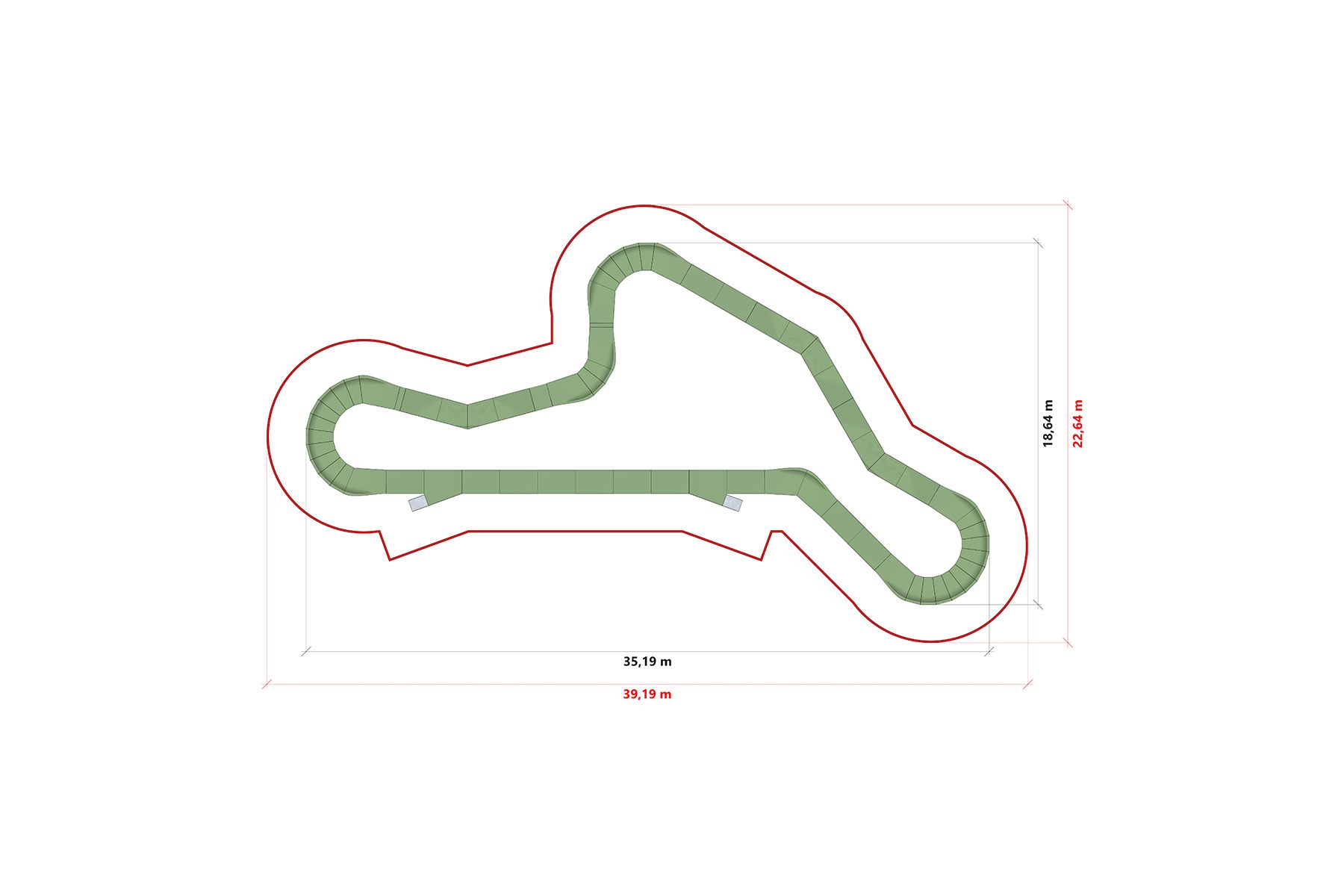 La pista está fabricada con tecnología de madera basada en una construcción modular de madera contrachapada con una superficie de rodadura duradera. El sistema modular permite una rápida instalación sobre asfalto, hormigón o un terreno convenientemente preparado, así como la posibilidad de ampliar y reconfigurar la pista en el futuro.
