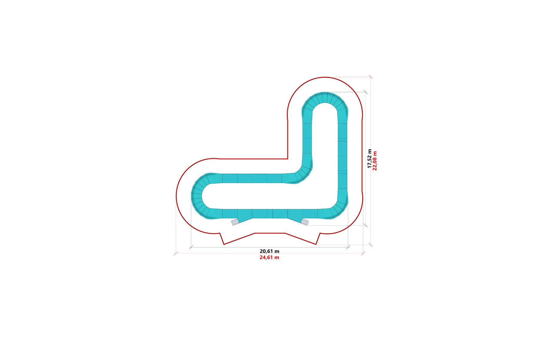 El diseño modular permite una instalación rápida y una posible reconfiguración futura. Gracias a un sistema de pies ajustables, la pista también puede instalarse en terrenos irregulares, lo que permite adaptar la instalación a diferentes espacios recreativos.