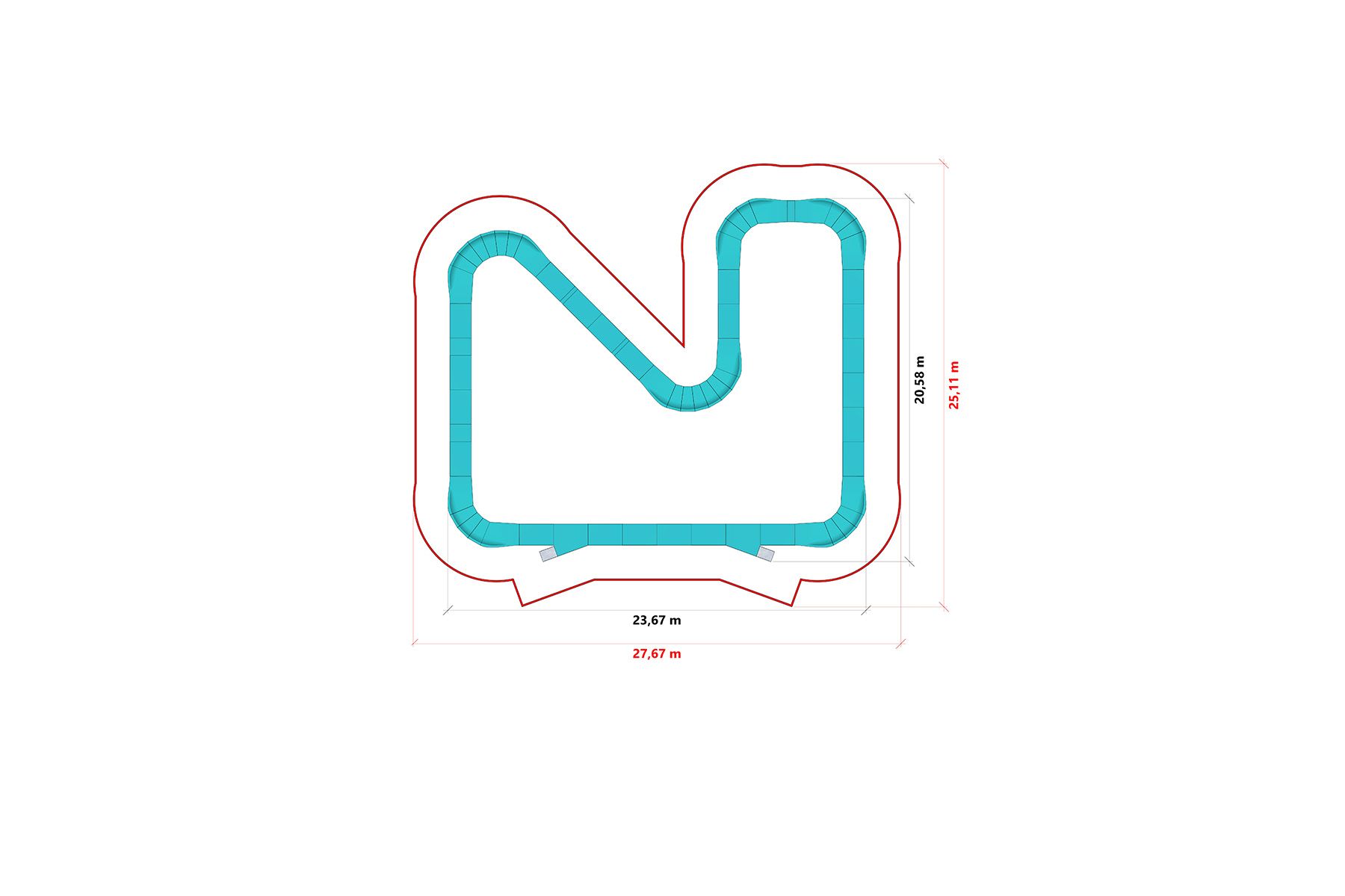 El diseño modular permite una instalación rápida y una posible reconfiguración futura. Gracias a un sistema de pies ajustables, la pista también puede instalarse en terrenos irregulares, lo que permite adaptar la instalación a diferentes espacios recreativos.