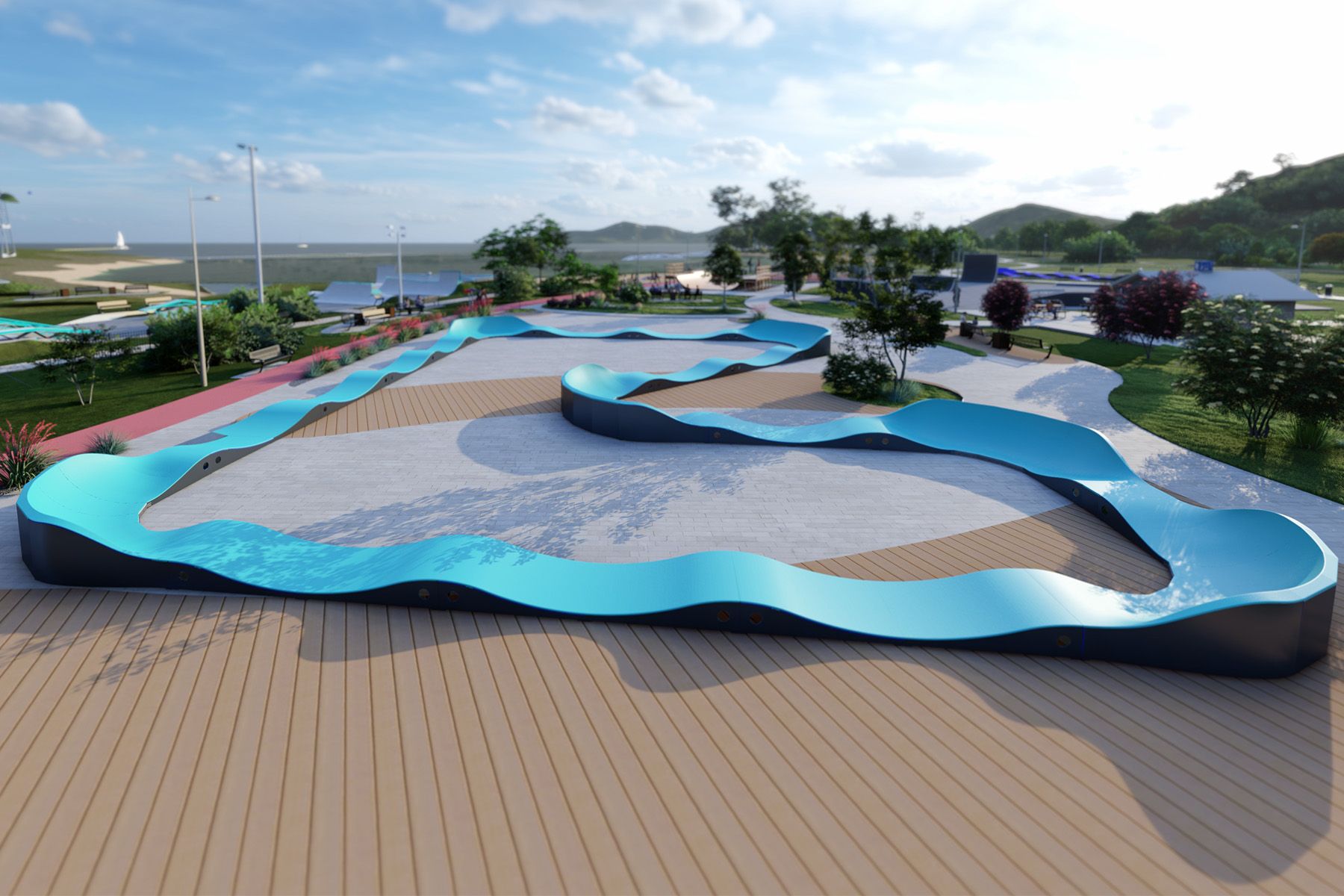 El pumptrack SUMMIT TF014, de 94 m de longitud, es un carril bici modular diseñado para bicicletas, monopatines, patines en línea y patinetes. El trazado de la pista se basa en una secuencia rítmica de moguls y giros que permiten mantener la velocidad haciendo trabajar el cuerpo adecuadamente, sin tener que pedalear ni empujar. Gracias a su clara geometría, la pista es de uso intuitivo y funciona bien tanto para principiantes como para usuarios más avanzados.