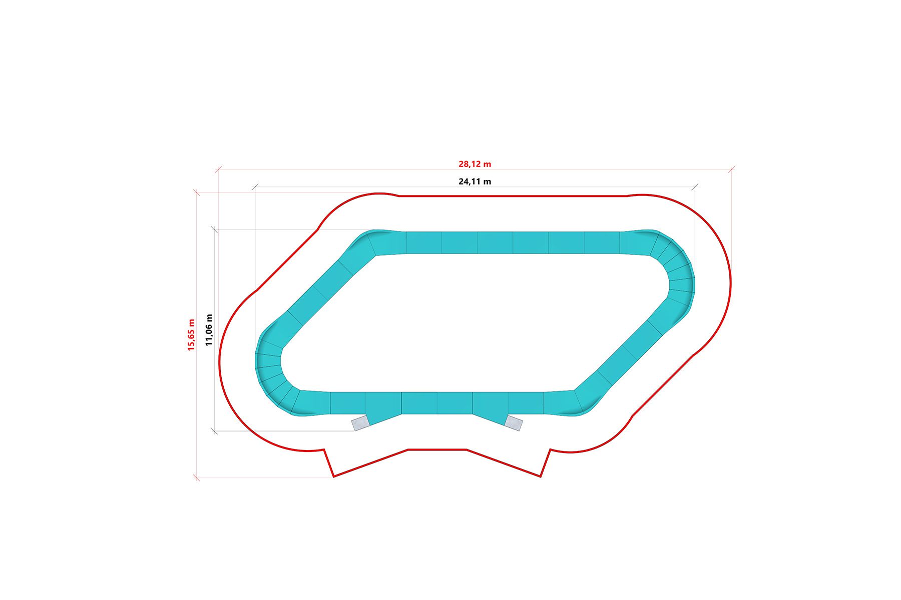 La pista está fabricada con tecnología de acero compuesto, que combina una estructura de acero galvanizado con una superficie duradera con propiedades antideslizantes. Los materiales utilizados garantizan una gran resistencia al uso intensivo y a las condiciones meteorológicas cambiantes, al tiempo que reducen la necesidad de mantenimiento.