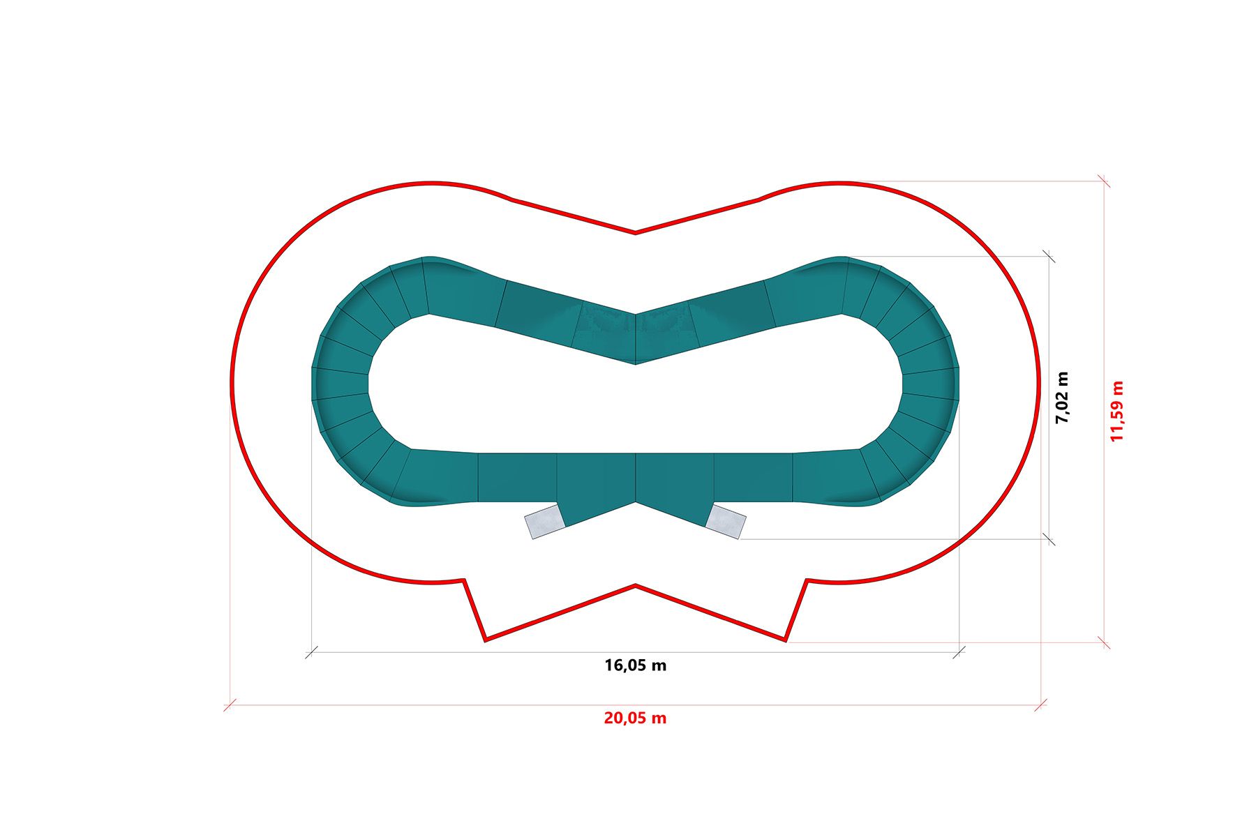 El diseño modular permite un fácil montaje, desmontaje y posible reconfiguración futura de la pista. Gracias a un sistema de pies ajustables, el pumptrack también puede instalarse en terrenos irregulares, y su movilidad permite utilizarlo tanto como infraestructura recreativa permanente como instalación temporal, por ejemplo, durante eventos.