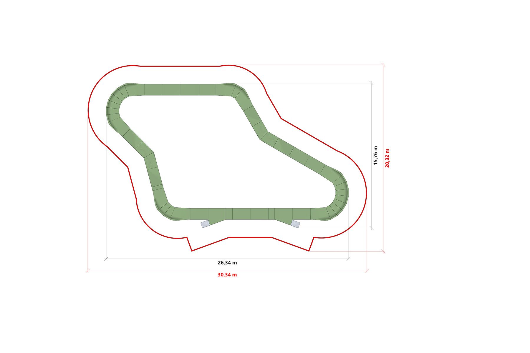 La pista está fabricada con tecnología de madera basada en una construcción modular de madera contrachapada con una superficie de rodadura duradera. El sistema modular permite una rápida instalación sobre asfalto, hormigón o un terreno convenientemente preparado, así como la posibilidad de ampliar y reconfigurar la pista en el futuro.