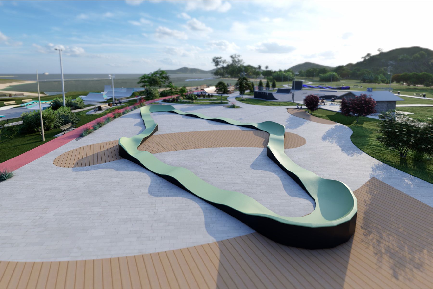 La Flow Pumptrack VLTAVA, de 70,5 m de longitud, es una pista diseñada para una conducción más dinámica y fluida. El diseño distintivo de curvas y olas crea una línea de recorrido que involucra al usuario no sólo en el movimiento arriba-abajo, sino también derecha-izquierda, haciendo que el paseo sea más rítmico e intuitivo. Esta geometría permite al ciclista mantener la velocidad sin pedalear, al tiempo que ofrece múltiples opciones de línea de conducción.