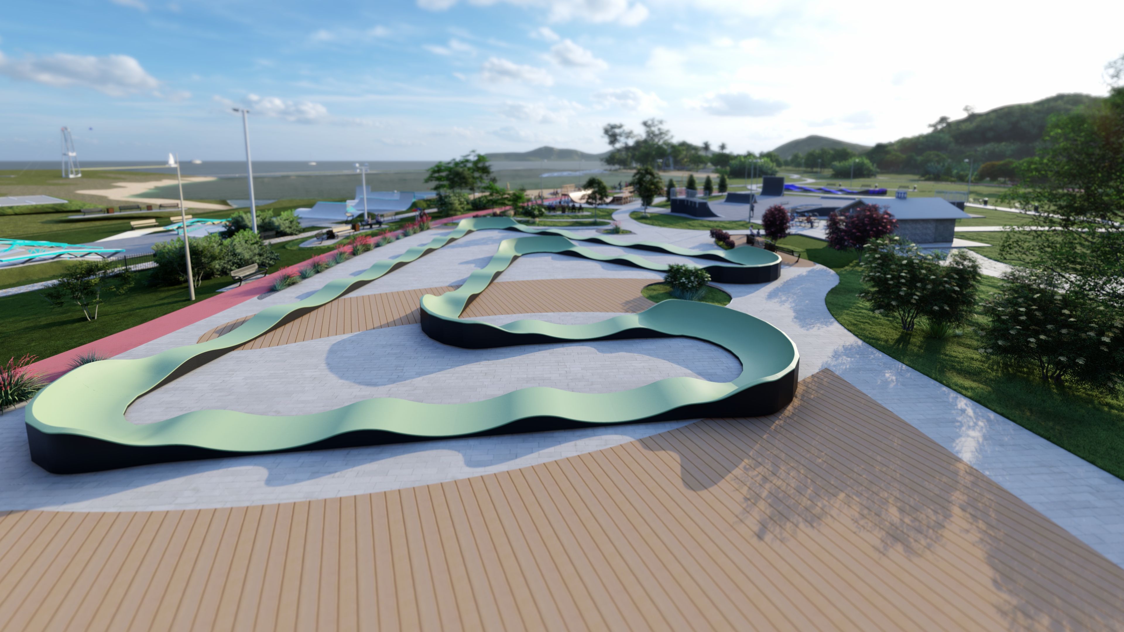 Pumptrack VULCANO PF19E es una pista avanzada con una superficie de rodadura de 125,5m de largo ideal para ciclistas que buscan retos y variedad en su conducción. Cubre un área de 32,62 m x 33,50 m, ofreciendo una pista amplia y variada que se adaptará tanto a principiantes como a usuarios experimentados. Gracias a su robusta construcción y cuidado diseño, Pumptrack VULCANO PF19E es perfecta para parques, áreas recreativas y otros espacios públicos, proporcionando una experiencia intensa y un ocio activo a todos los entusiastas del ciclismo.